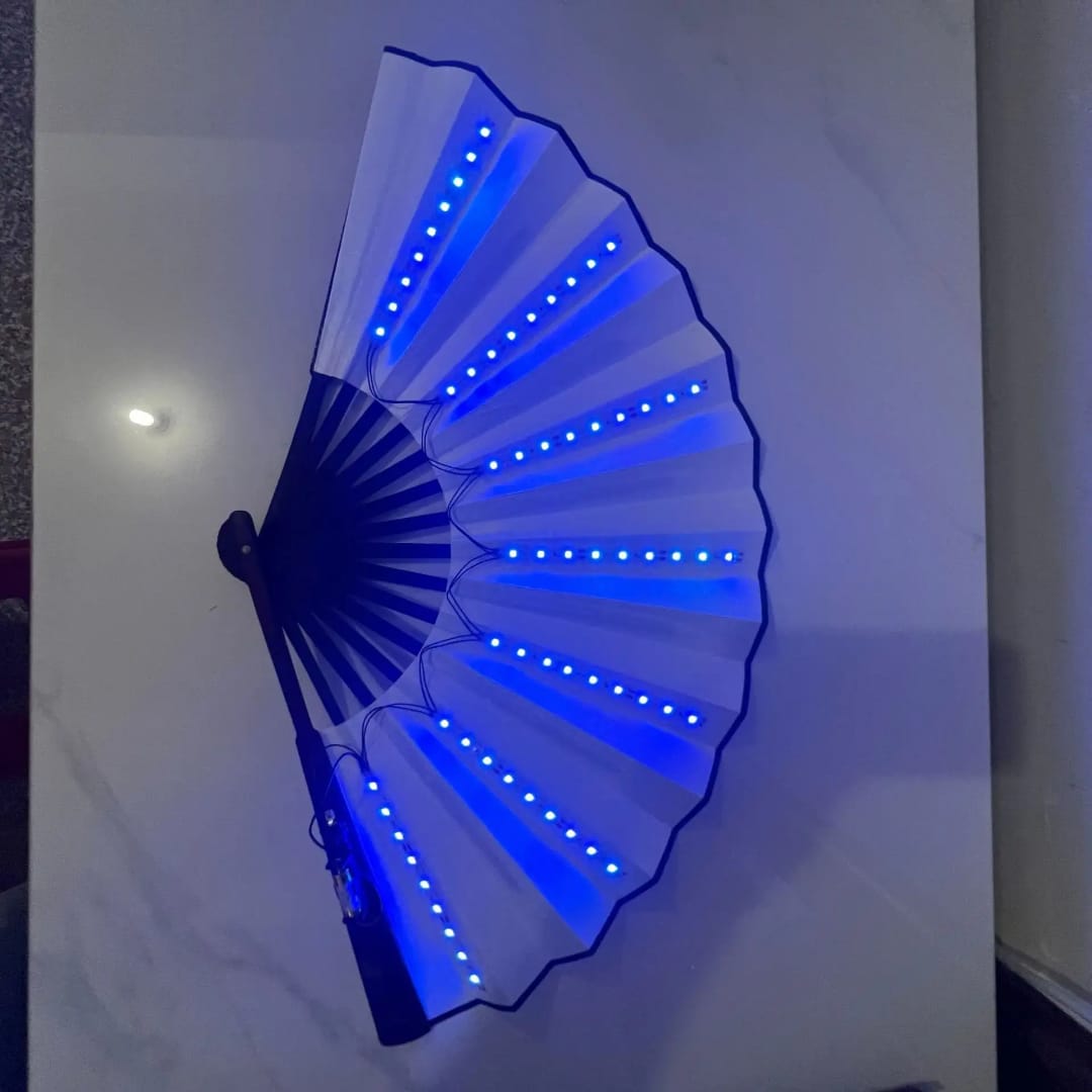 Illuminez vos soirées avec cet éventail élégant équipé de bandes LED . Parfait pour les spectacles, soirées dansantes ou festivals, il combine tradition et modernité pour un effet visuel unique. Léger, pliable et rechargeable, il ajoute une touche de glamour à chaque mouvement.